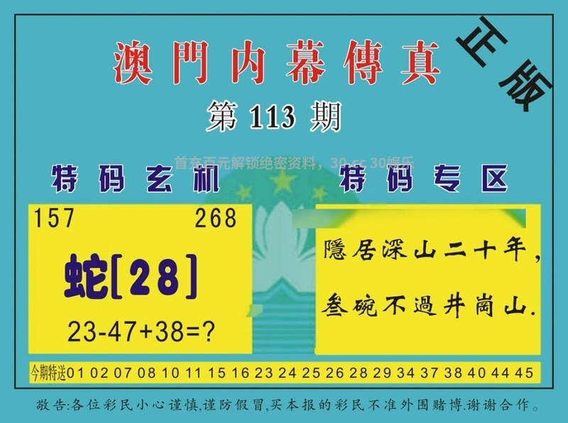 | 晨光初照,金铺碧浪 溪喧石上,鷗逐霞光 玄機测字:《軒》 一語中特:二人三足 |